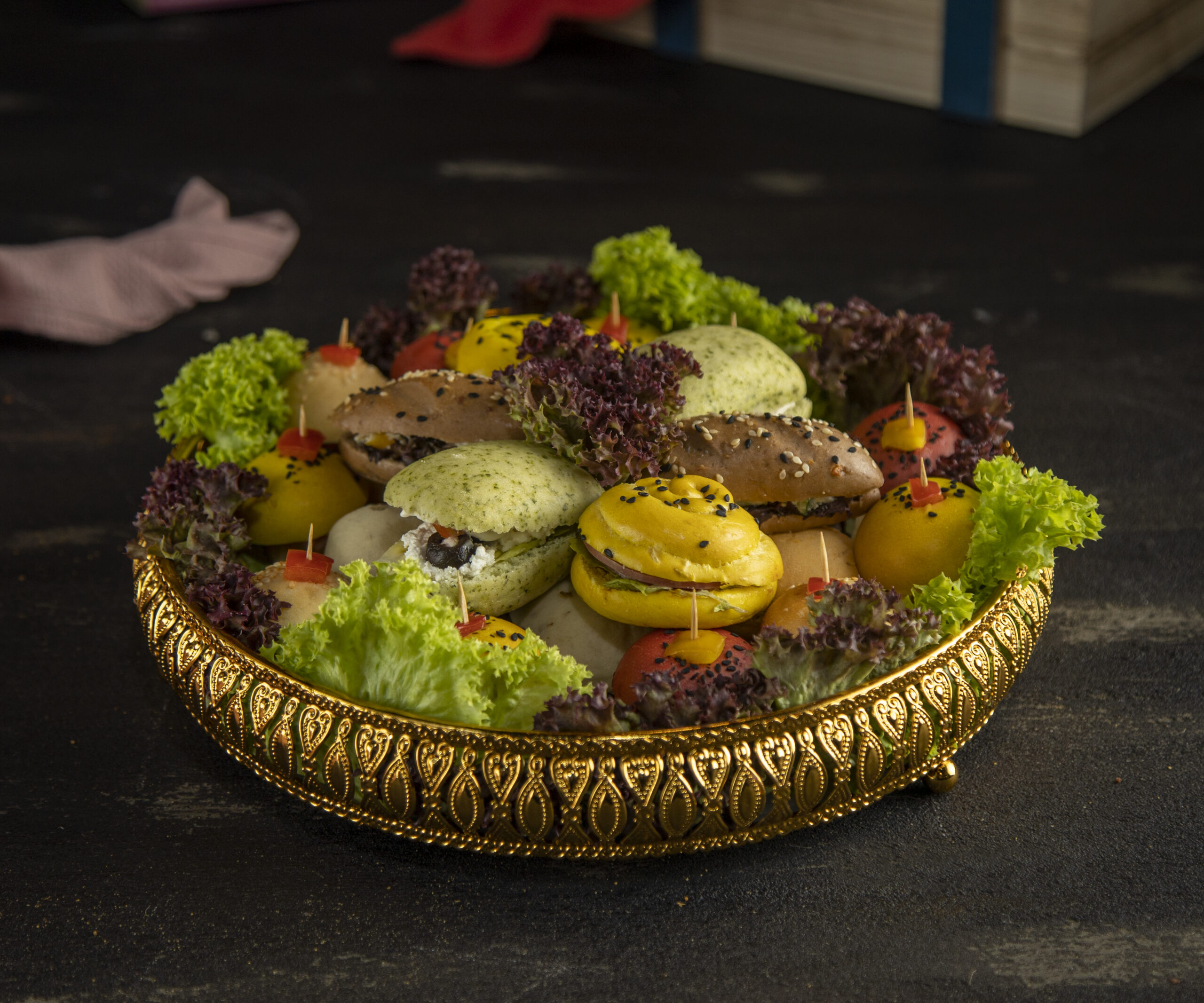 A sandwich tray is a platter filled with a variety of sandwiches, often including different fillings like meats, cheeses, and vegetables.